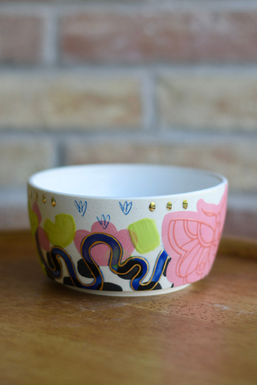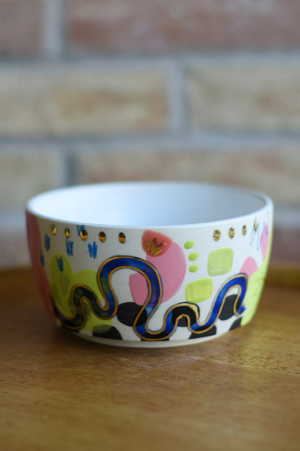 Sure, we could have just called it a bowl, but we didn't want you to feel limited to using it for food. Use it as a catch-all, a pet bowl, to organize your favorite spaces, as eye candy for your bookshelf, for the dips when you're hosting book club, to hold a few pieces of fruit, or to make your nightly bowl of ice cream feel like a treat. We hope to see this piece live a life that's as colorful as it is.